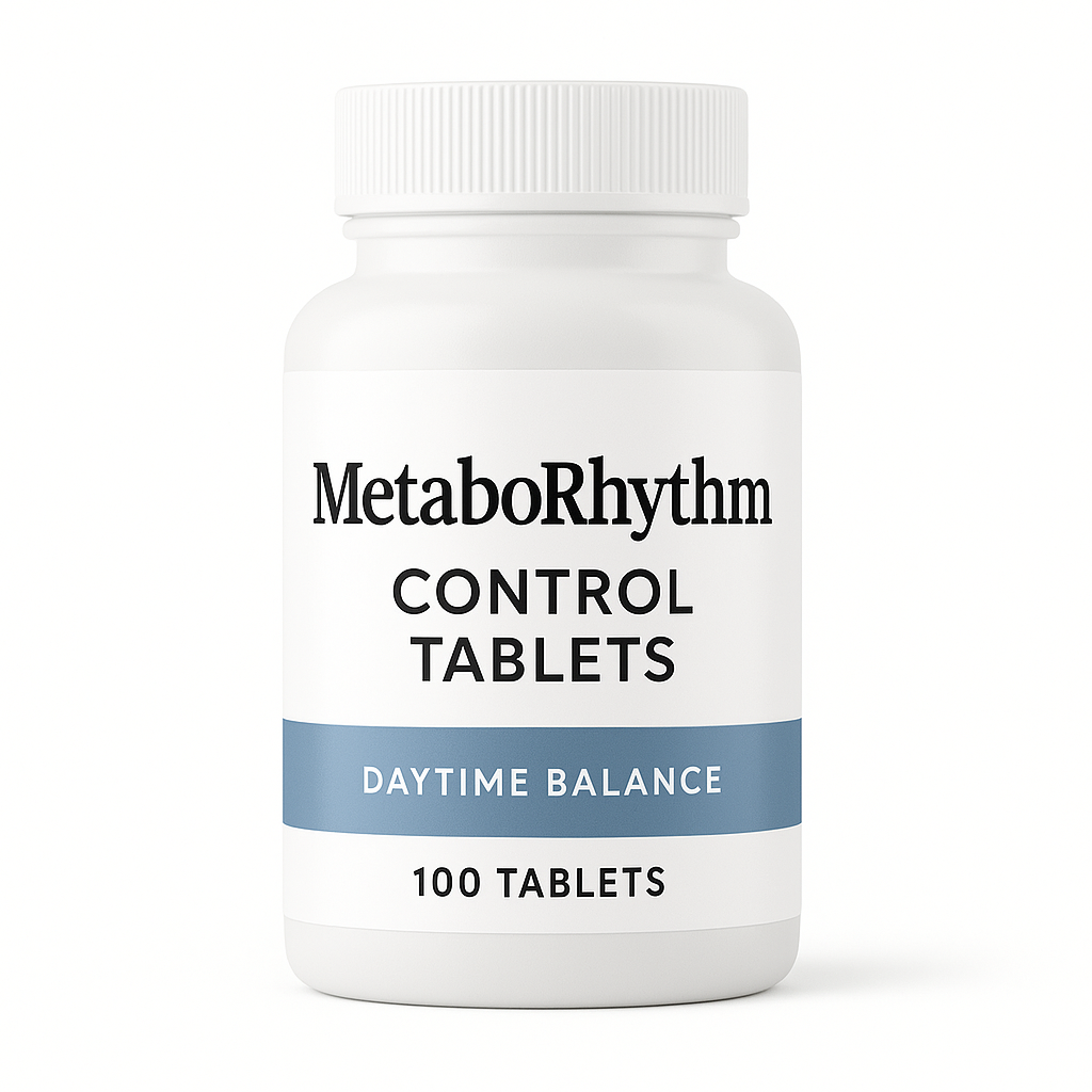 MetaboRhythm Control Tablets are expertly formulated to help maintain balanced metabolism and steady energy levels throughout the day. This comprehensive blend combines chromium, green tea extract, and L-carnitine with supportive B vitamins to assist the body’s natural energy conversion and metabolic efficiency. Designed for those seeking daily vitality and weight balance, MetaboRhythm offers stimulant-free metabolic support that complements your circadian rhythm for all-day harmony and focus.